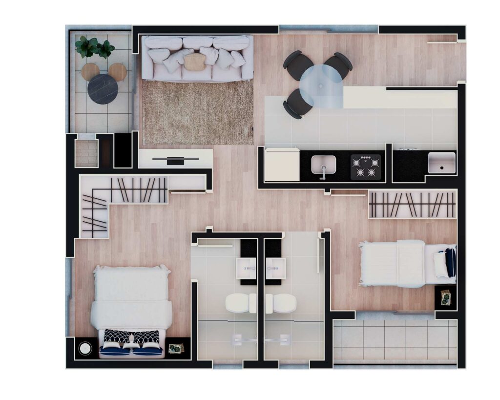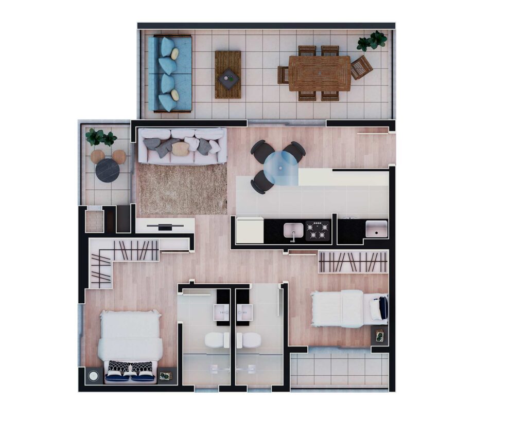 Todo o projeto foi pensado para valorizar a luz natural dos ambientes, além da visão panorâmica. Todos os imóveis têm sacadas e infraestrutura para ar condicionado. Há algumas unidades também com opção de churrasqueira.